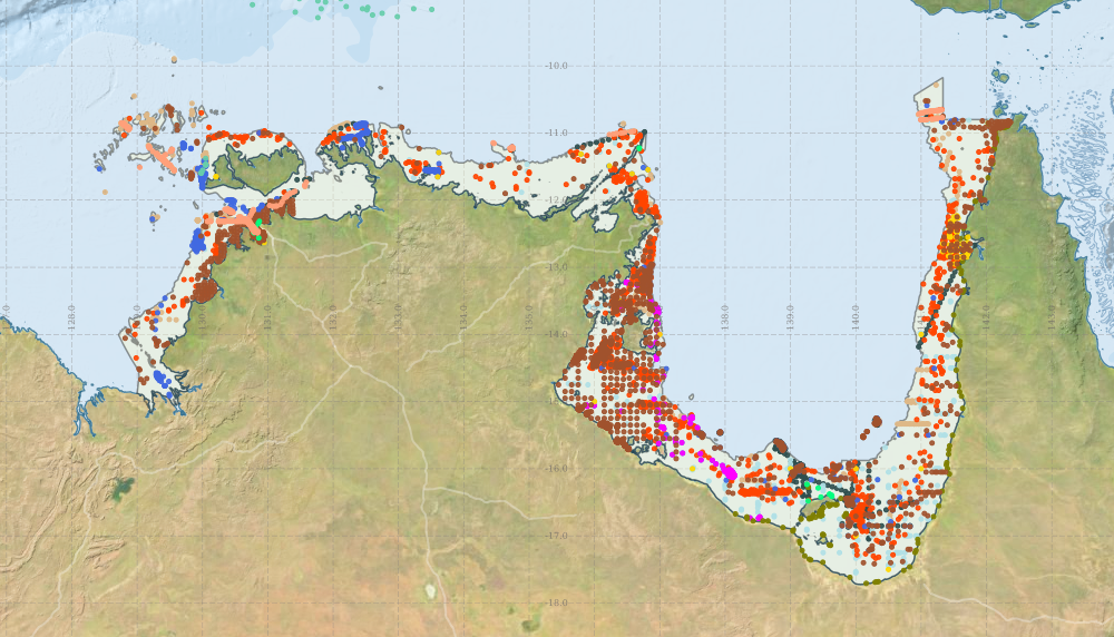Acknowledgements: Background map - Bright Earth e-Atlas Basemap v1.0 (AIMS, GBRMPA, JCU, DSITIA, GA, UCSD, NASA, OSM, ESRI) CC BY