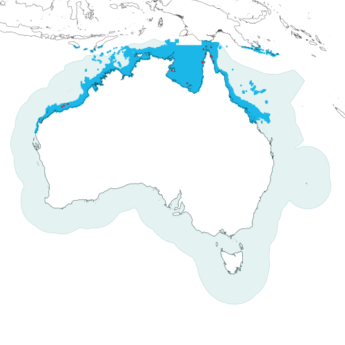 Occurrence locations [12] shown as red circles - View CSIRO Catch records Get expert distribution shapefile