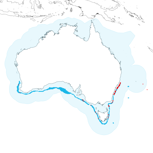 Modelled distribution shown as blue polygon (source: Australian National Fish Expert Distributions) Updated on 2008-11-19.