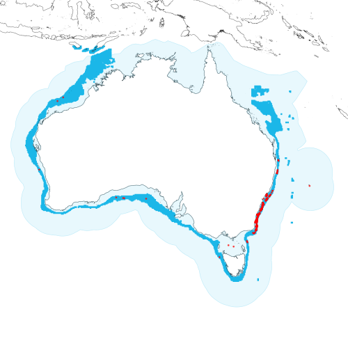 Modelled distribution shown as blue polygon (source: Australian National Fish Expert Distributions) Updated on 2008-11-19.
