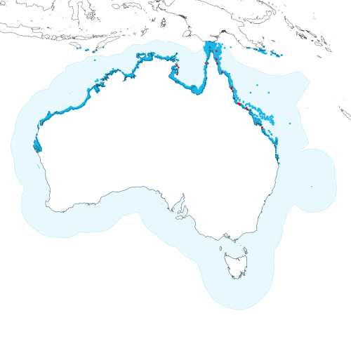 Occurrence locations [19] shown as red circles - View CSIRO Catch records Get expert distribution shapefile