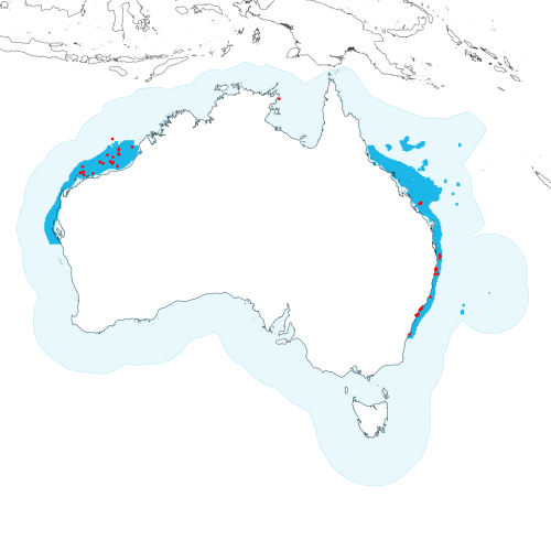 Modelled distribution shown as blue polygon (source: Australian National Fish Expert Distributions) Updated on 2008-11-19.