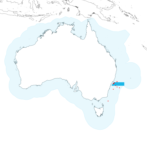Occurrence locations [14] shown as red circles - View CSIRO Catch records Get expert distribution shapefile