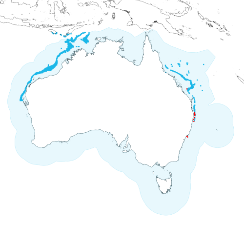 Modelled distribution shown as blue polygon (source: Australian National Fish Expert Distributions) Updated on 2008-11-19.