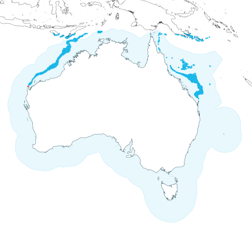 Modelled distribution shown as blue polygon (source: Australian National Fish Expert Distributions) Updated on 2008-11-19.