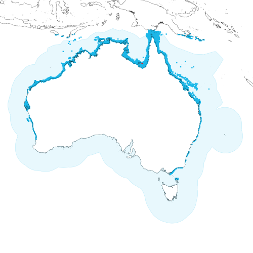 Modelled distribution shown as blue polygon (source: Australian National Fish Expert Distributions) Updated on 2009-01-06.