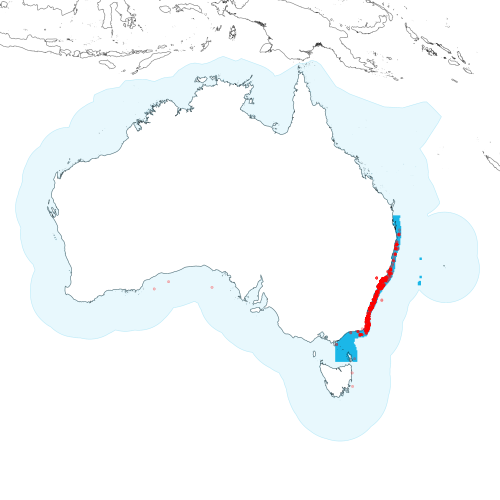 Modelled distribution shown as blue polygon (source: Australian National Fish Expert Distributions) Updated on 2008-11-19.