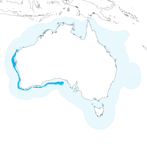 Modelled distribution shown as blue polygon (source: Australian National Fish Expert Distributions) Updated on 2008-11-19.