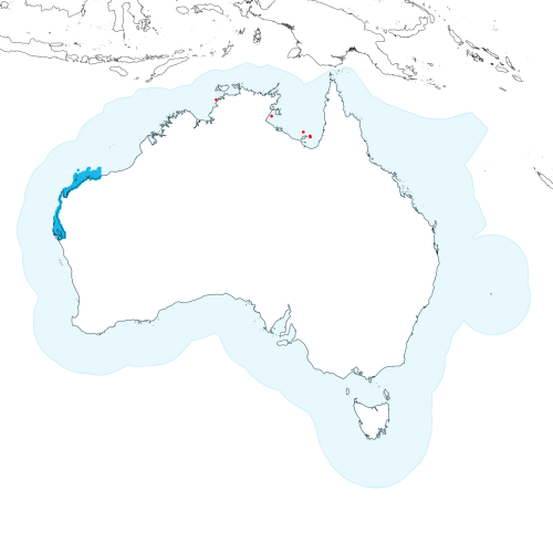 Modelled distribution shown as blue polygon (source: Australian National Fish Expert Distributions) Updated on 2008-11-19.