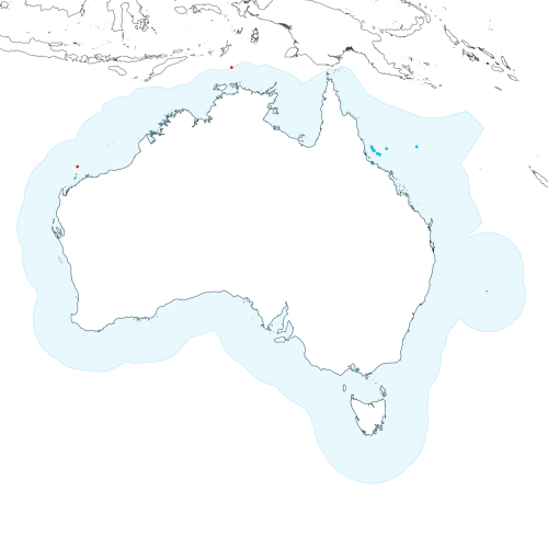 Occurrence locations [2] shown as red circles - View CSIRO Catch records Get expert distribution shapefile