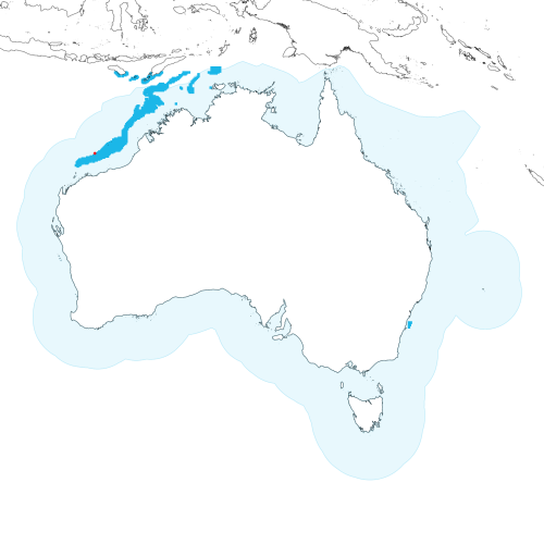 Modelled distribution shown as blue polygon (source: Australian National Fish Expert Distributions) Updated on 2008-11-19.