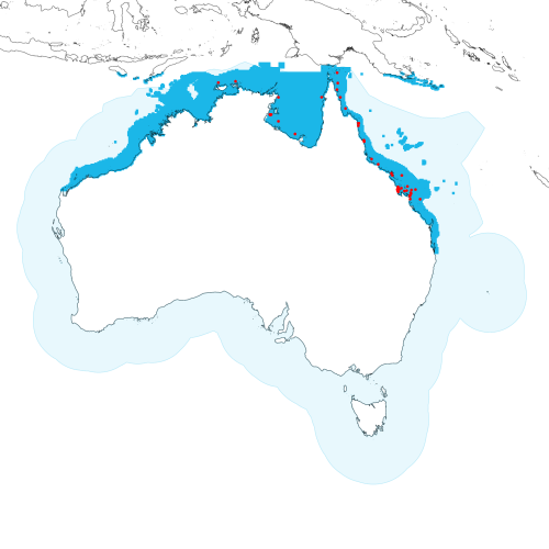 Modelled distribution shown as blue polygon (source: Australian National Fish Expert Distributions) Updated on 2009-01-06.
