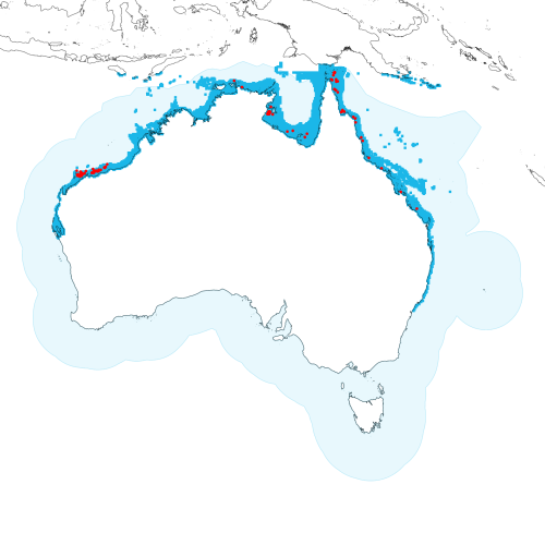Modelled distribution shown as blue polygon (source: Australian National Fish Expert Distributions) Updated on 2008-11-19.