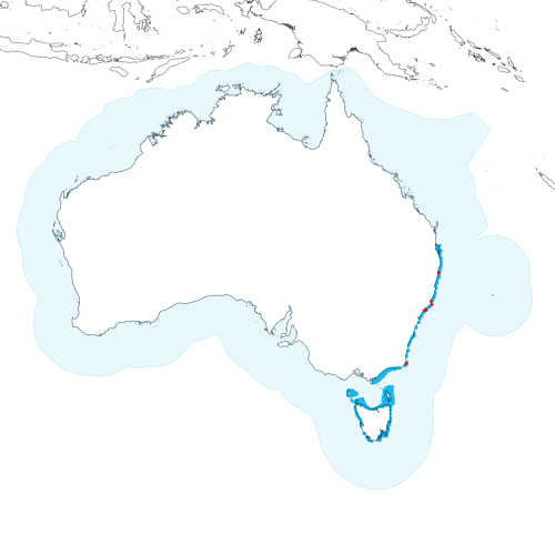 Occurrence locations [9] shown as red circles - View CSIRO Catch records Get expert distribution shapefile