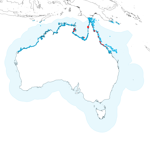 Modelled distribution shown as blue polygon (source: Australian National Fish Expert Distributions) Updated on 2009-01-06.