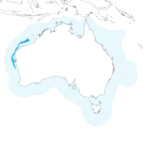 Occurrence locations [22] shown as red circles - View CSIRO Catch records Get expert distribution shapefile