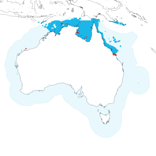Occurrence locations [53] shown as red circles - View CSIRO Catch records Get expert distribution shapefile