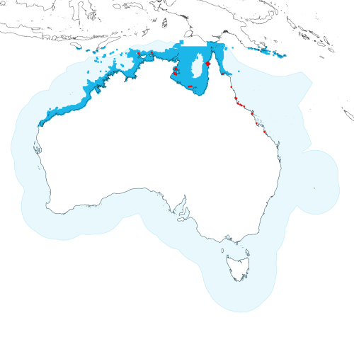 Modelled distribution shown as blue polygon (source: Australian National Fish Expert Distributions) Updated on 2008-11-19.