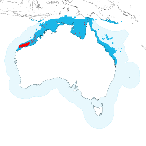 Modelled distribution shown as blue polygon (source: Australian National Fish Expert Distributions) Updated on 2014-08-12.