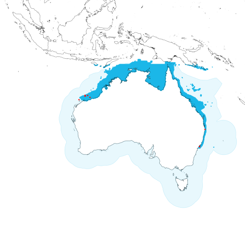 Modelled distribution shown as blue polygon (source: Australian National Fish Expert Distributions) Updated on 2009-01-06.