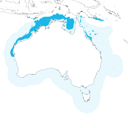 Modelled distribution shown as blue polygon (source: Australian National Fish Expert Distributions) Updated on 2008-11-19.