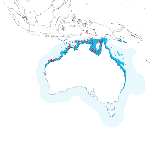 Modelled distribution shown as blue polygon (source: Australian National Fish Expert Distributions) Updated on 2008-11-19.