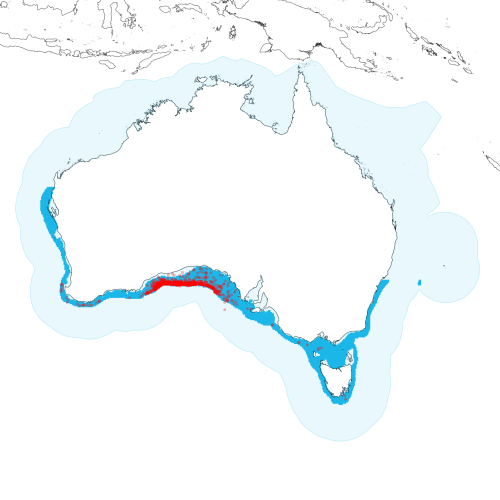 Modelled distribution shown as blue polygon (source: Australian National Fish Expert Distributions) Updated on 2008-11-19.