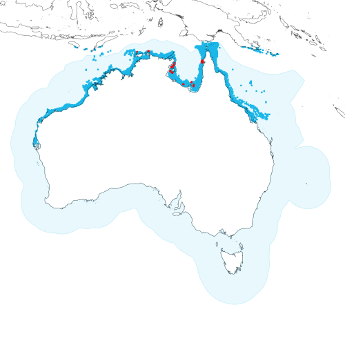 Occurrence locations [45] shown as red circles - View CSIRO Catch records Get expert distribution shapefile
