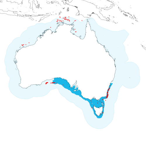 Occurrence locations [231] shown as red circles - View CSIRO Catch records Get expert distribution shapefile