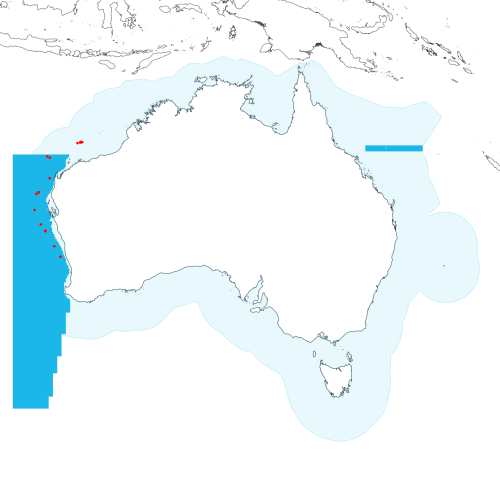 Occurrence locations [16] shown as red circles - View CSIRO Catch records Get expert distribution shapefile