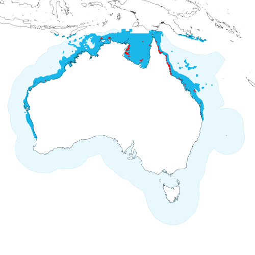 Modelled distribution shown as blue polygon (source: Australian National Fish Expert Distributions) Updated on 2009-01-06.