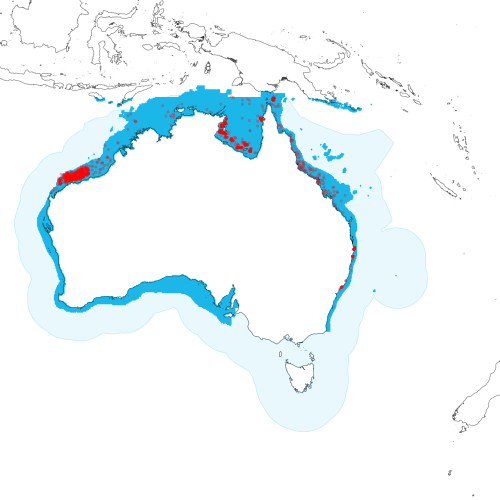 Modelled distribution shown as blue polygon (source: Australian National Fish Expert Distributions) Updated on 2008-11-19.
