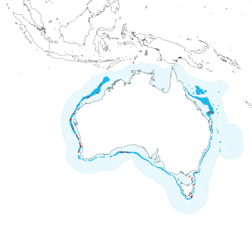 View detailed map or click on map to see same. ![]() Modelled distribution shown as blue polygon (source: Australian National Fish Expert Distributions) Updated on 2008-11-19. Occurrence locations [50] shown as red circles - View CSIRO Catch records Get expert distribution shapefile |
