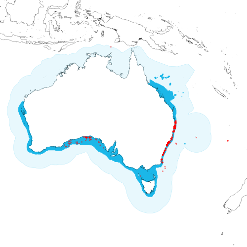 View detailed map or click on map to see same. ![]() Modelled distribution shown as blue polygon (source: Australian National Fish Expert Distributions) Updated on 2014-08-09. Occurrence locations [828] shown as red circles - View CSIRO Catch records Get expert distribution shapefile |