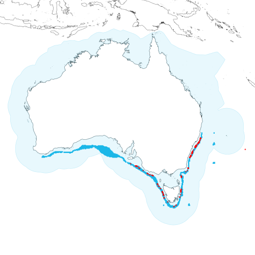 View detailed map or click on map to see same. ![]() Modelled distribution shown as blue polygon (source: Australian National Fish Expert Distributions) Updated on 2009-01-06. Occurrence locations [288] shown as red circles - View CSIRO Catch records Get expert distribution shapefile |