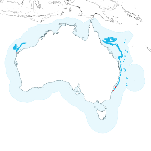 View detailed map or click on map to see same. ![]() Modelled distribution shown as blue polygon (source: Australian National Fish Expert Distributions) Updated on 2009-01-06. Occurrence locations [7] shown as red circles - View CSIRO Catch records Get expert distribution shapefile |