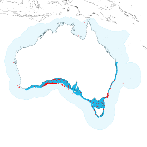 View detailed map or click on map to see same. ![]() Modelled distribution shown as blue polygon (source: Australian National Fish Expert Distributions) Updated on 2008-11-19. Occurrence locations [266] shown as red circles - View CSIRO Catch records Get expert distribution shapefile |