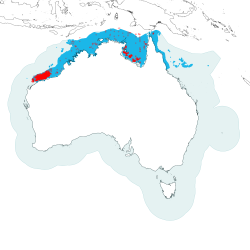 View detailed map or click on map to see same. ![]() Modelled distribution shown as blue polygon (source: Australian National Fish Expert Distributions) Updated on 2025-05-06. Occurrence locations [1444] shown as red circles - View CSIRO Catch records Get expert distribution shapefile |