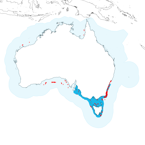 View detailed map or click on map to see same. ![]() Modelled distribution shown as blue polygon (source: Australian National Fish Expert Distributions) Updated on 2008-11-19. Occurrence locations [276] shown as red circles - View CSIRO Catch records Get expert distribution shapefile |