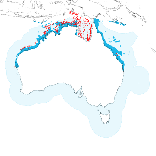 View detailed map or click on map to see same. ![]() Modelled distribution shown as blue polygon (source: Australian National Fish Expert Distributions) Updated on 2009-01-06. Occurrence locations [432] shown as red circles - View CSIRO Catch records Get expert distribution shapefile |