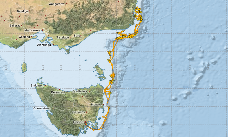 Latitude: -42.05 to -36.58