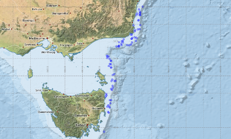 Latitude: -43.24 to -35.98
