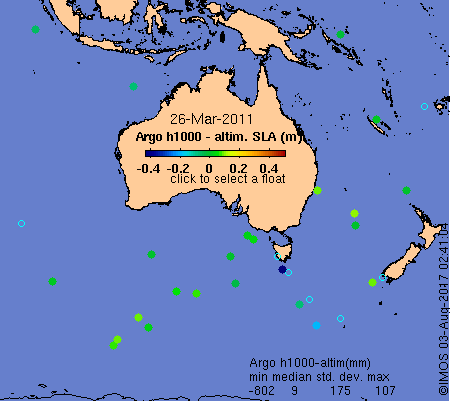 Click on an Argo float on the map above or select one by [WMO number] to see T & S profiles.