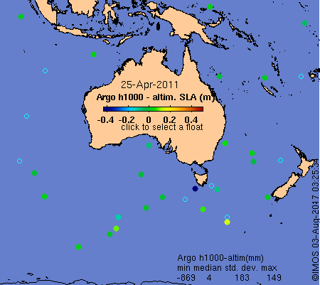 Click on an Argo float on the map above or select one by [WMO number] to see T & S profiles.