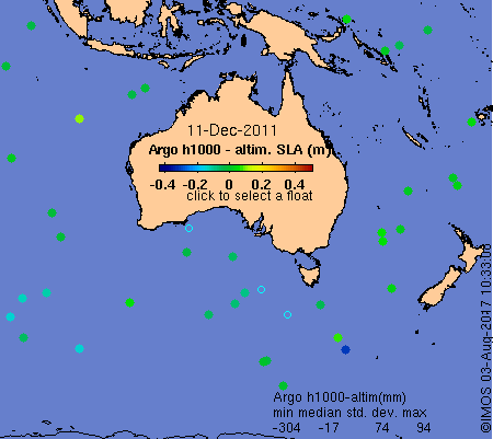 Click on an Argo float on the map above or select one by [WMO number] to see T & S profiles.