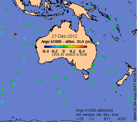 Click on an Argo float on the map above or select one by [WMO number] to see T & S profiles.
