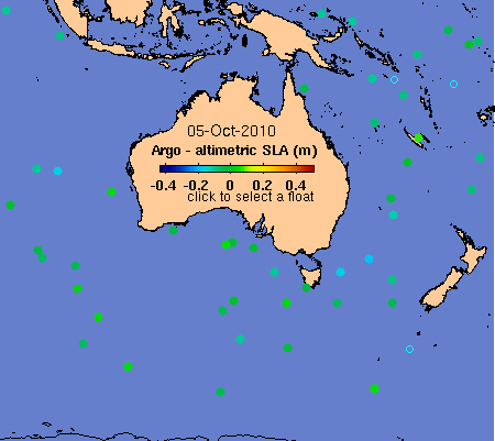 Click on an Argo float on the map above or select one by [WMO number] to see T & S profiles.