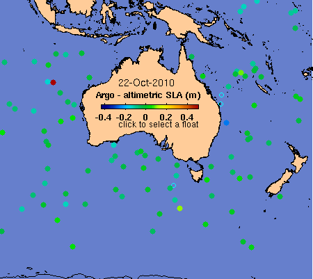 Click on an Argo float on the map above or select one by [WMO number] to see T & S profiles.