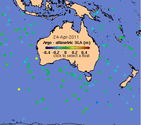 Click on an Argo float on the map above or select one by [WMO number] to see T & S profiles.