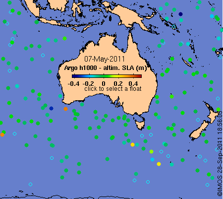 Click on an Argo float on the map above or select one by [WMO number] to see T & S profiles.